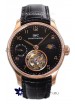 Black Dial with Power Reserve Indicator at 9O'Clock, MoonPhase Indicator functioning as Day/Night Counter at 3 O'Clock and Tourbillon located at 6 O'Clock on Dial