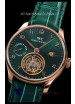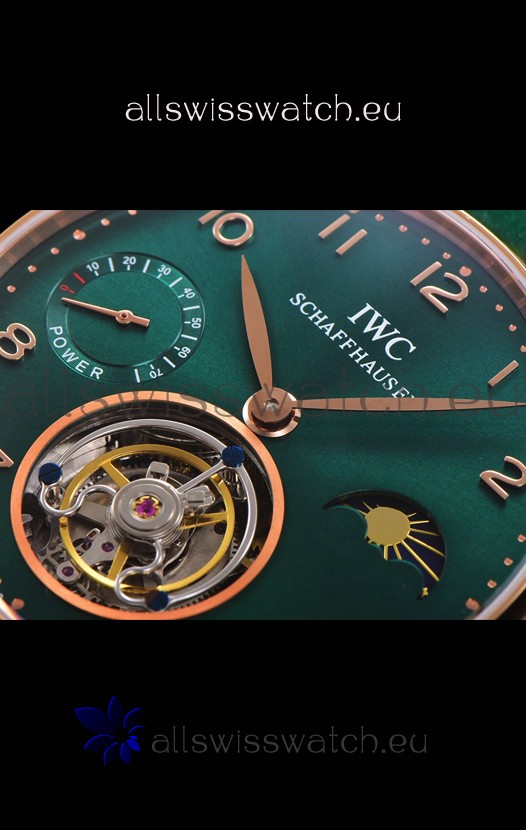 IWC Portugese Hand-Wound Genuine Tourbillon Green Dial Rose Gold Casing Swiss Replica Watch