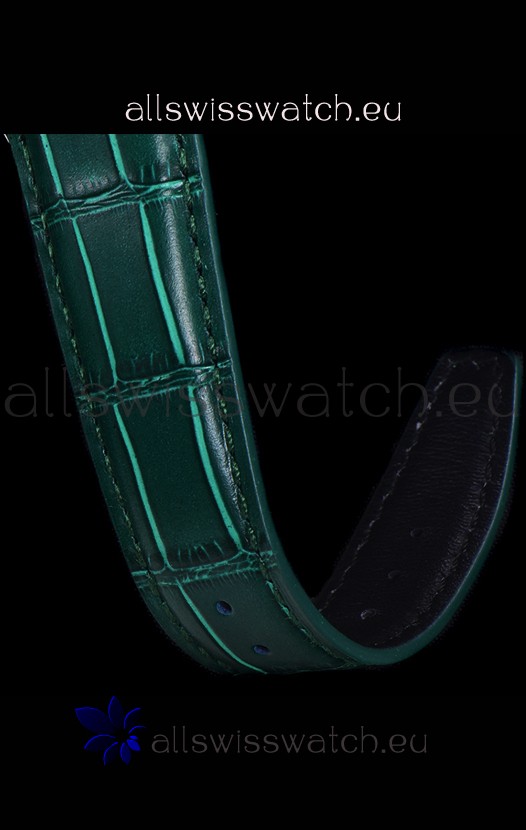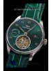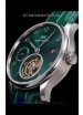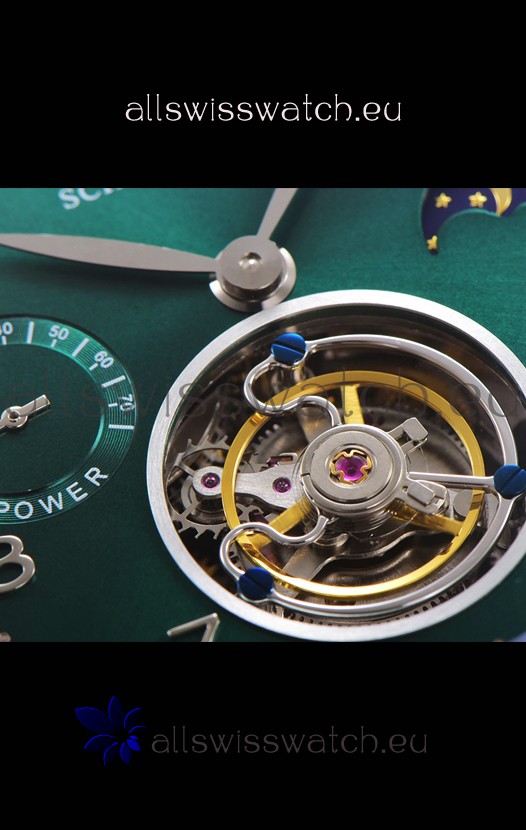 Green Dial with Power Reserve Indicator at 9O'Clock, MoonPhase Indicator functioning as Day/Night Counter at 3 O'Clock and Tourbillon located at 6 O'Clock on Dial