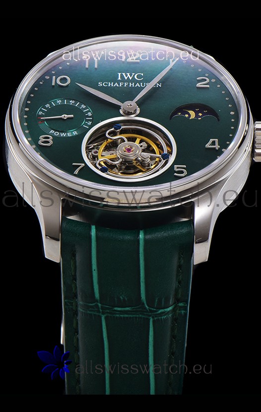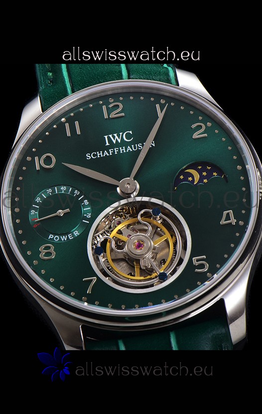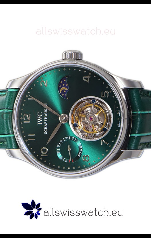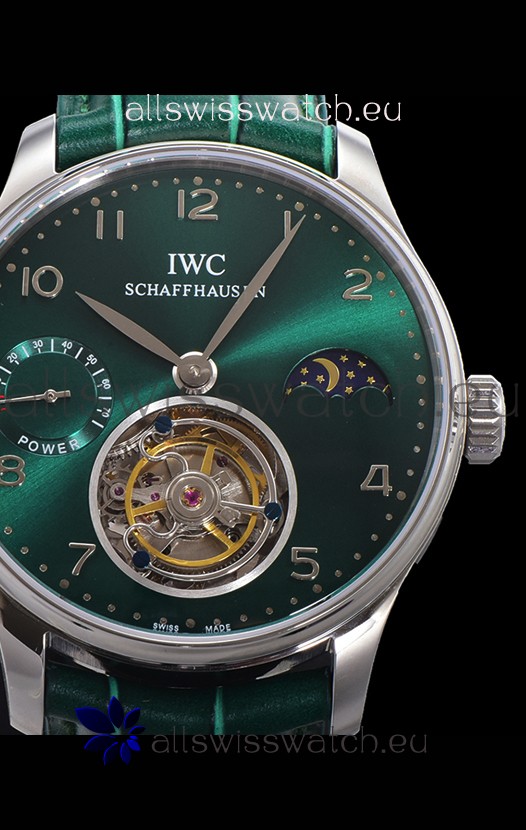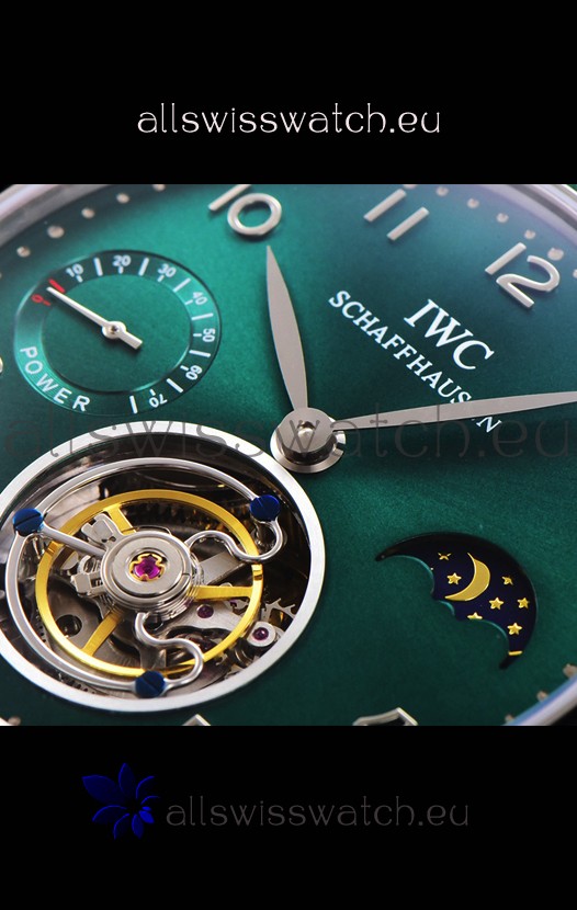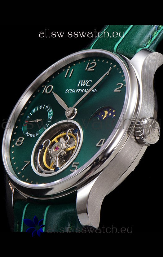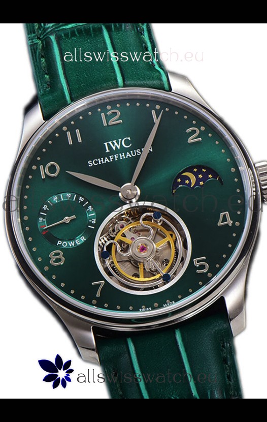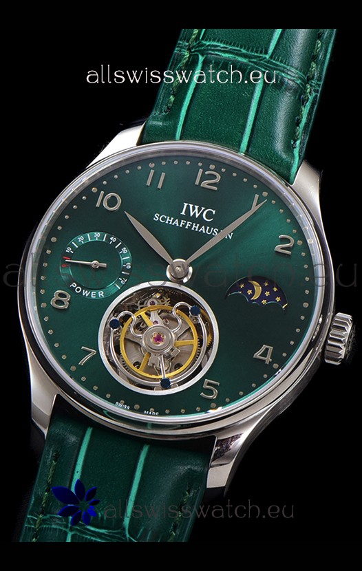 IWC Portugese Hand-Wound Genuine Tourbillon Green Dial Steel Casing Swiss Replica Watch