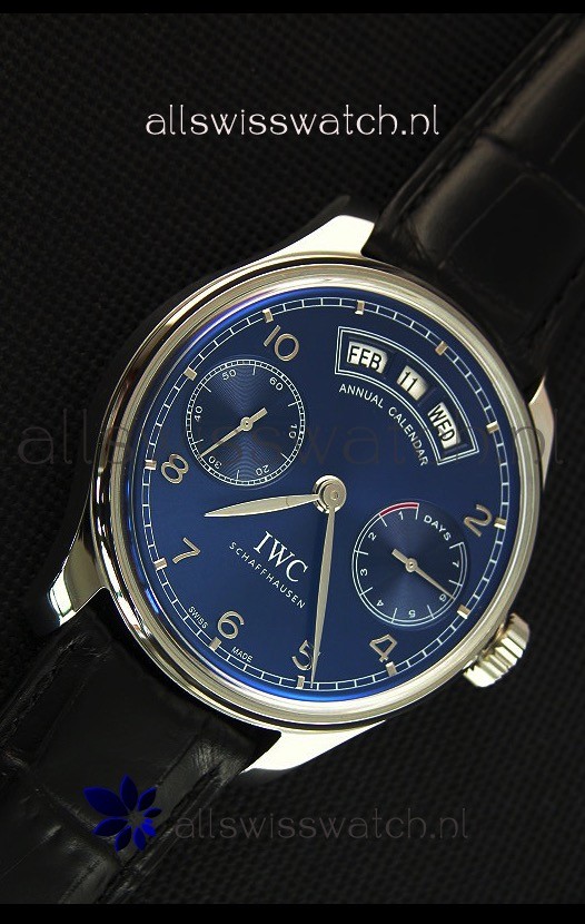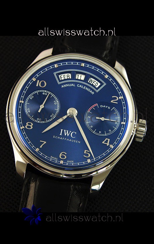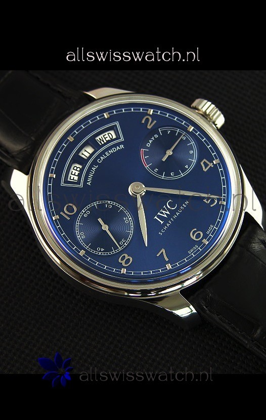 Get your IWC Portugieser Annual Calender Midnight Blue IW503502 1:1 Mirror Replica Watch today with 10% discount on 1 Watch purchase and 20% on two or more Watches