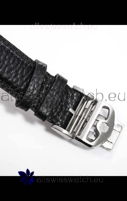 Genuine Black Leather Strap with IWC Markings and Engravings with IWC Signature Fold Clasps