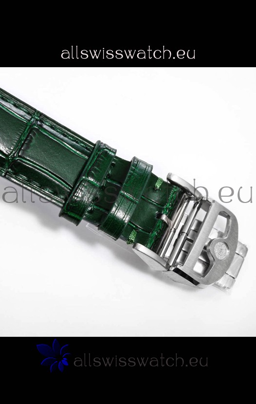 Genuine Green Leather Strap with IWC Markings and Engravings with IWC Signature Fold Clasps