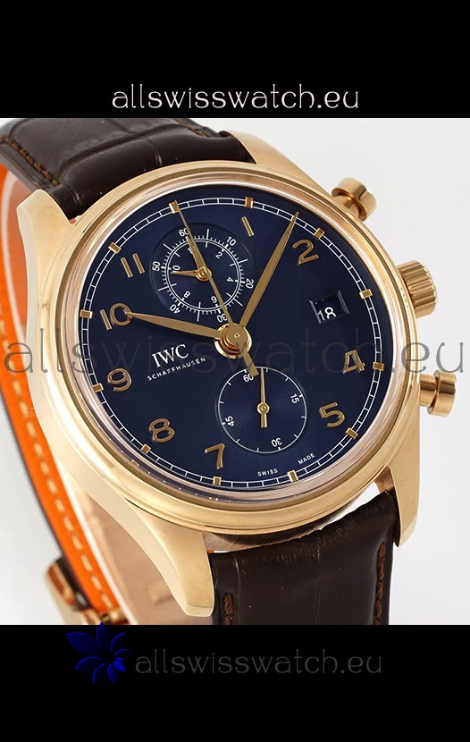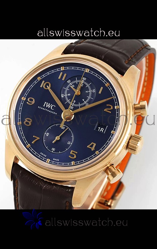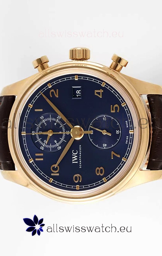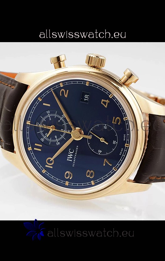 IWC Portugieser Chronograph Classic IW390305 Yellow Gold Blue Dial 1:1 Mirror Replica