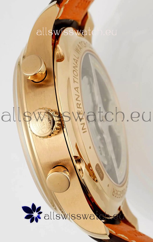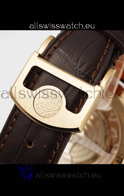 Genuine Leather Strap with Gold Plated Stainless Steel Fold Buckle complete with IWC Markings and Engravings