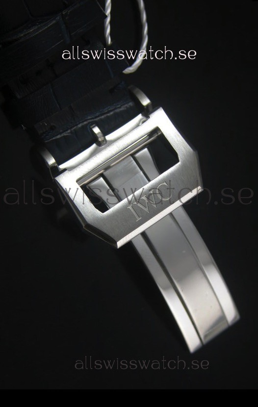 Genuine Leather Strap with IWC Markings and Engravings with Tang Stainless Steel Clasp