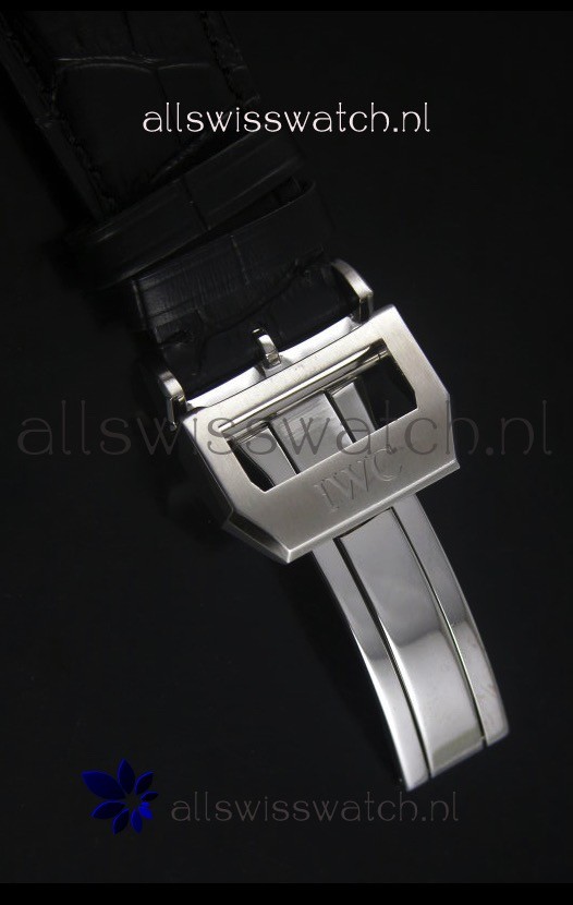 Black Leather Strap with Stainless Steel Deployment Clasp complete with IWC Markings and Engravings