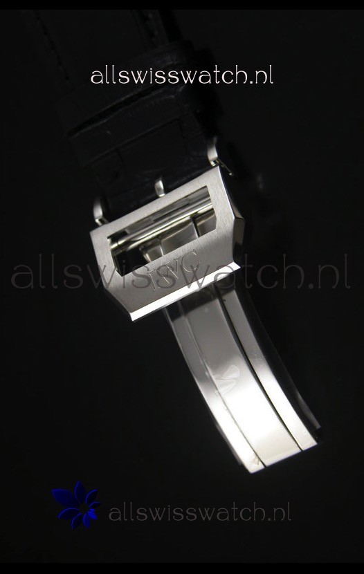 Black Leather Strap with Stainless Steel Deployment Clasp complete with IWC Markings and Engravings