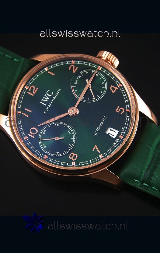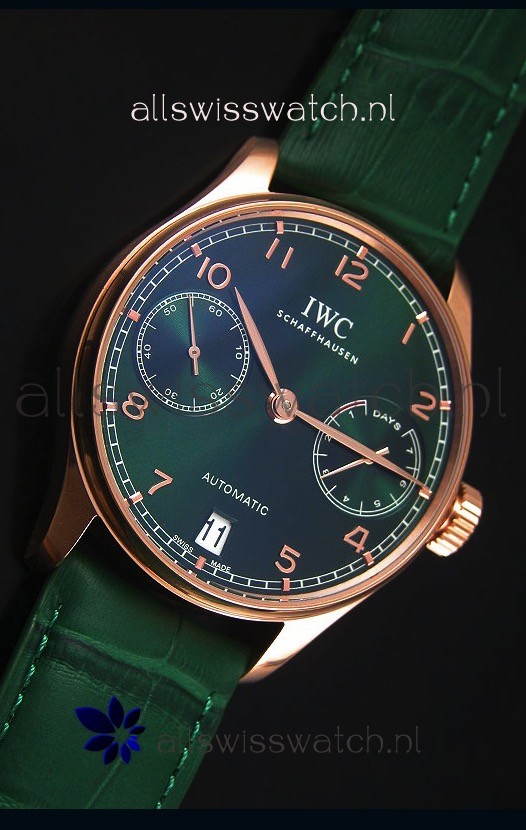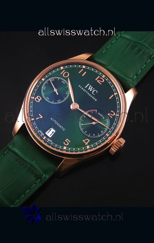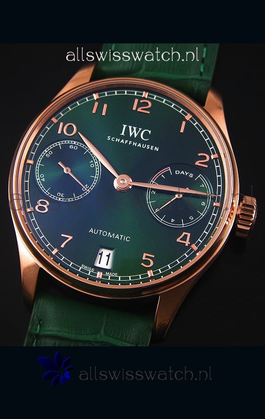 IWC Portugieser Swiss 1:1 Mirror Replica Watch Green Dial Rose Gold Case Watch