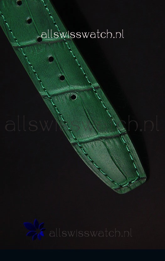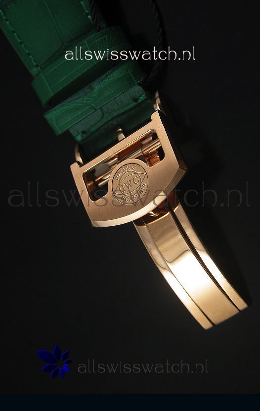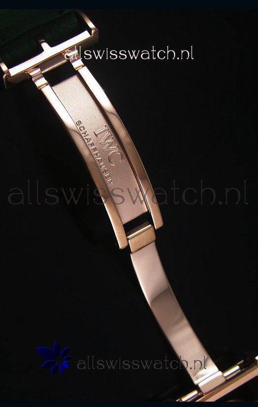 Genuine Green Leather Strap with Rose Gold Steel Clasp complete with IWC markings and Engravings.