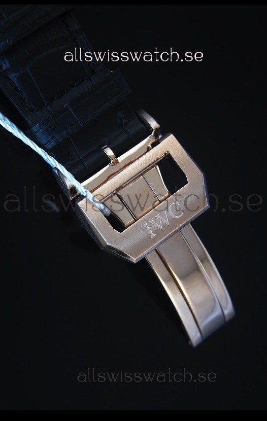 Genuine Black Leather Strap with 18K gold Plating Clasp complete with IWC markings and Engravings.