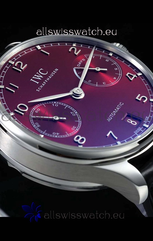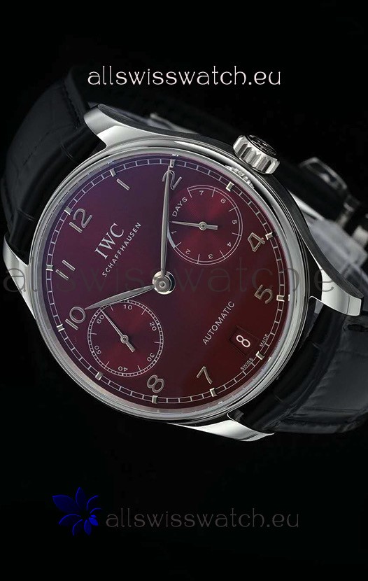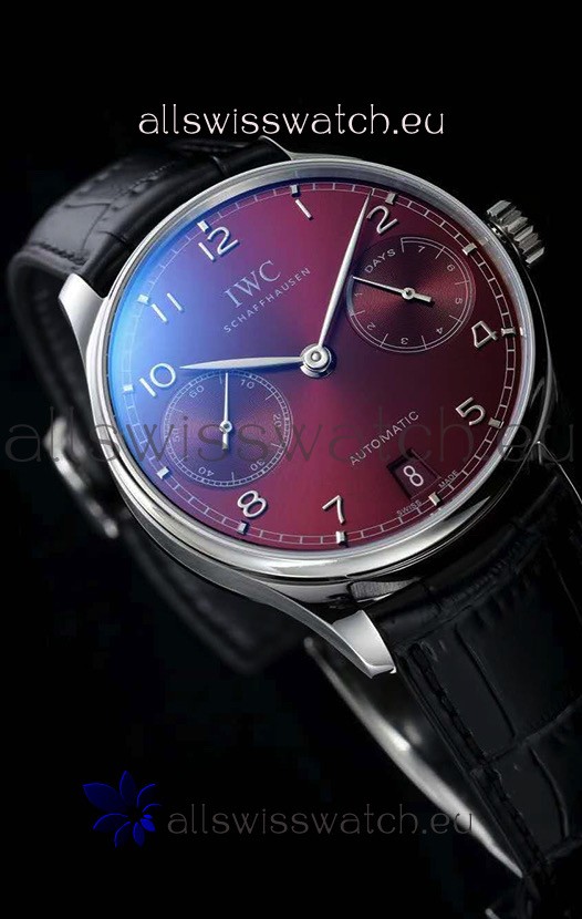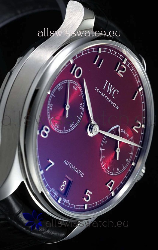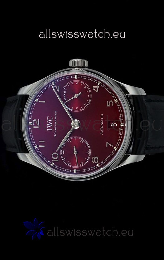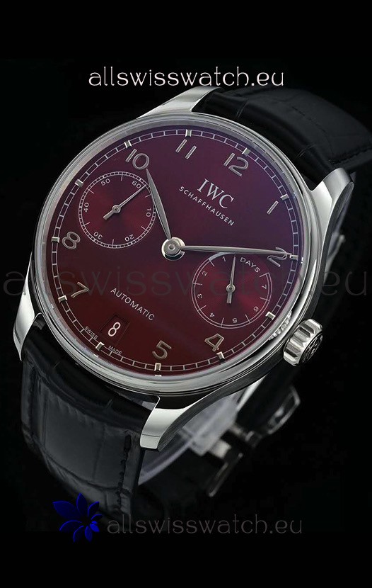 IWC Portugieser Swiss IW500714 1:1 Mirror 904L Steel Watch Burgundy Dial Watch