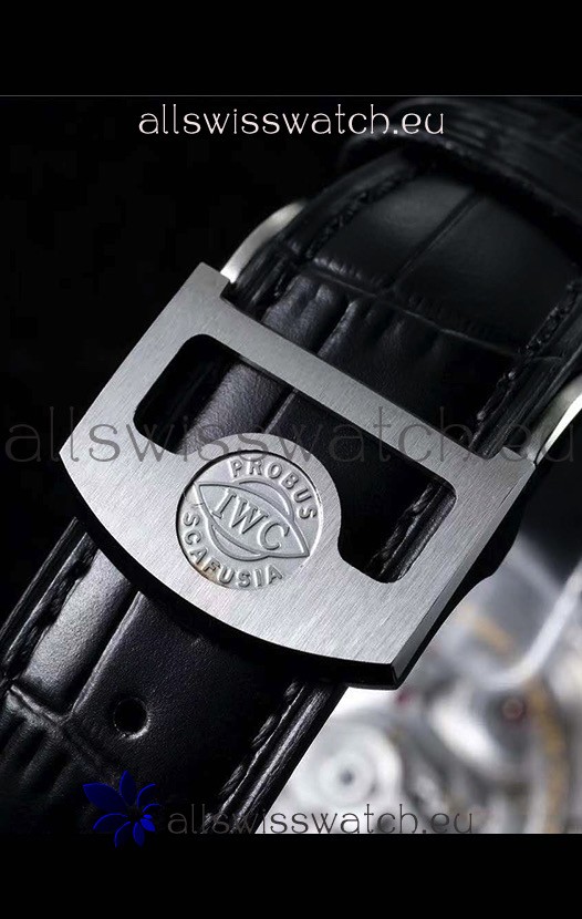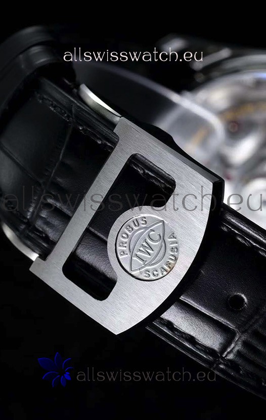 Genuine Black Leather Strap with Stainless Steel Clasp complete with IWC markings and Engravings.