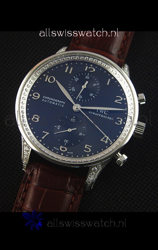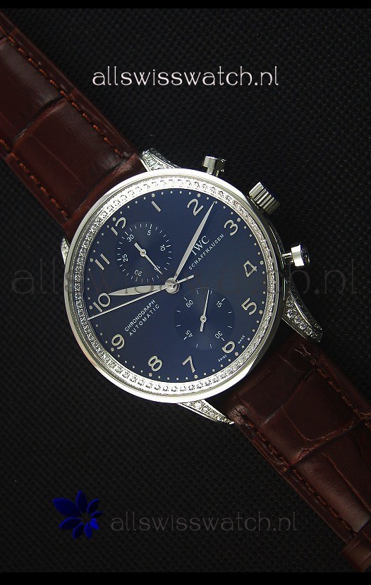 IWC Portuguese Chronograph Stainless Steel with Diamonds 1:1 Mirror Replica Watch