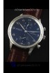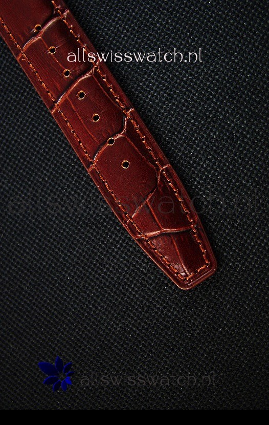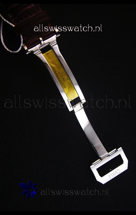 Genuine Brown Leather Strap with IWC markings and engravings with Polished Stainless Steel Deployment Clasp