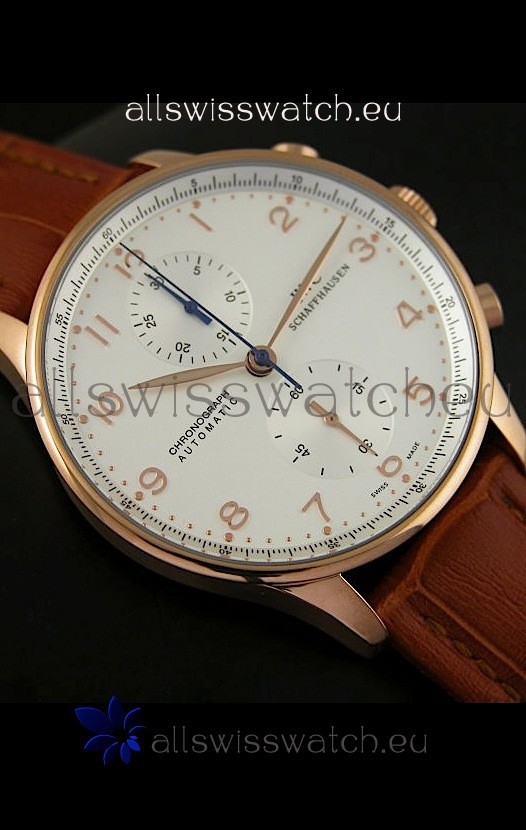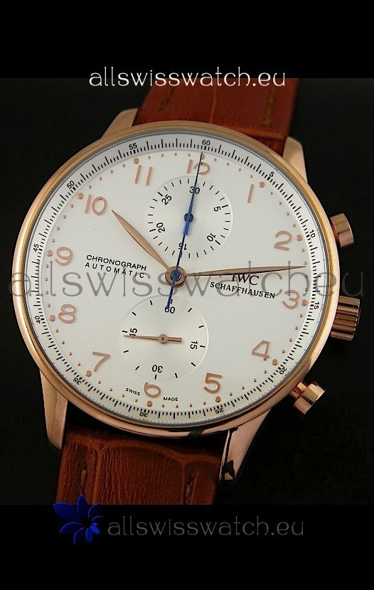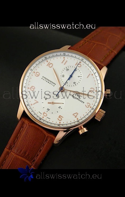 IWC Portuguese Chronograph Swiss Replica Watch in Pink Gold - 1:1 Mirror Replica Edition
