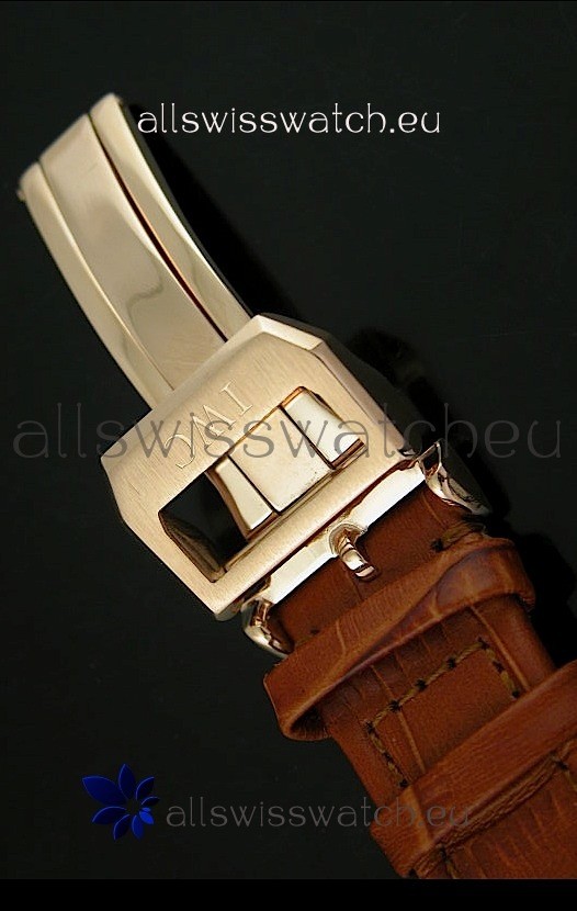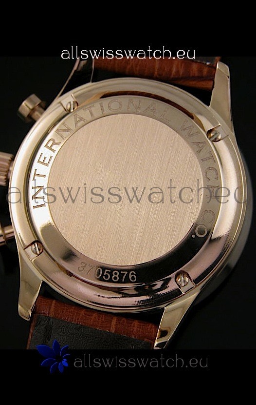 Genuine Brown Leather Strap with IWC markings and engravings and Pink Gold Plated Clasp also Guaranteed Not to Fade