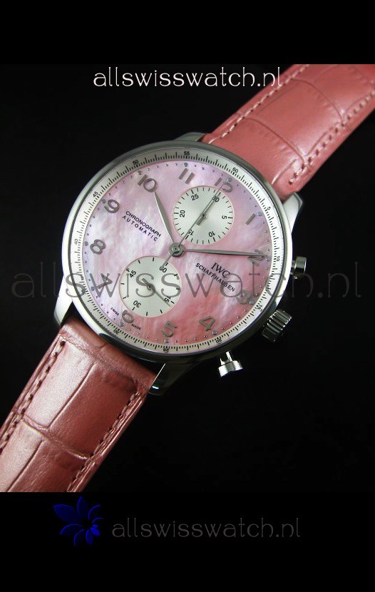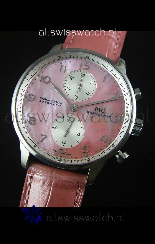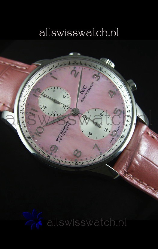 IWC Portuguese Chronograph Swiss Replica Watch in Pink Pearl Dial - 1:1 Mirror Replica Edition