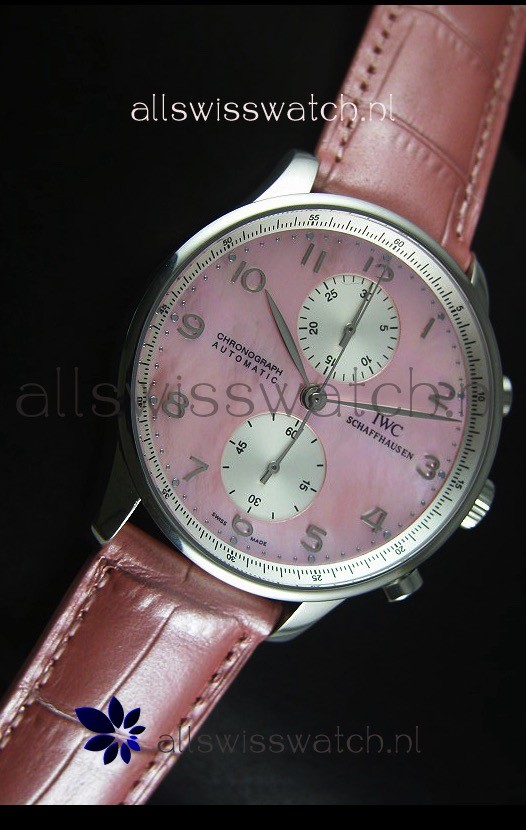 Get the best IWC Portuguese Chronograph Swiss Replica Watch in Pink Pearl Dial - 1:1 Mirror Replica Editionat allswisswatch.eu
