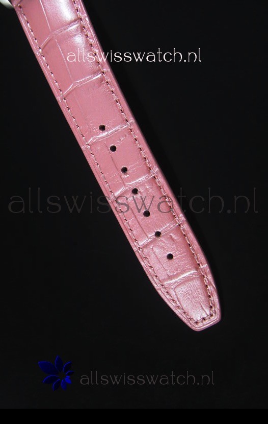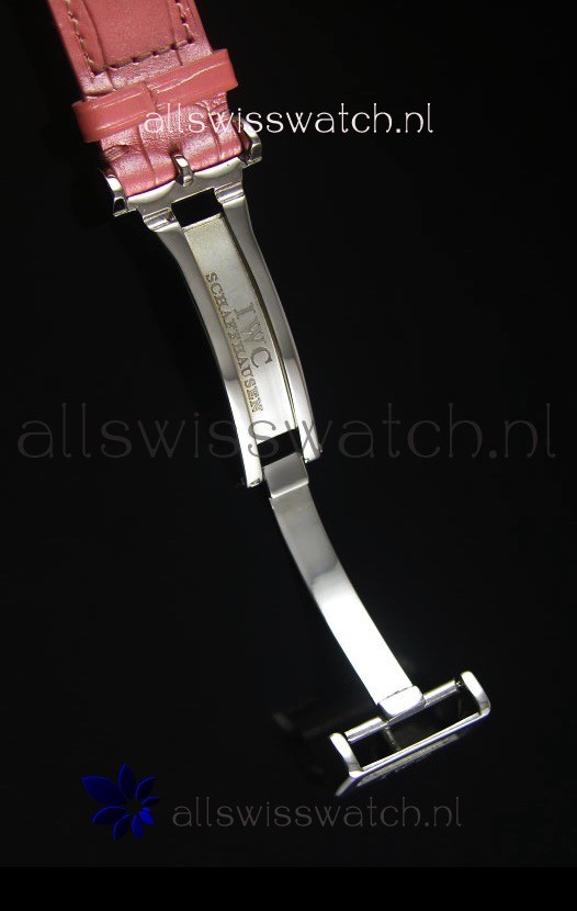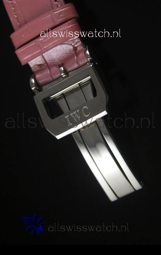 Genuine Pink Leather Strap with IWC markings and engravings with Polished Stainless Steel Deployment Clasp