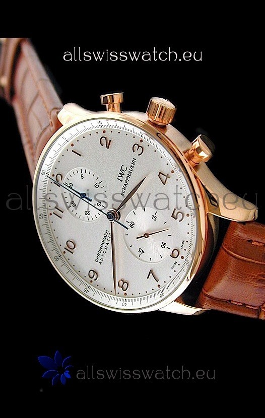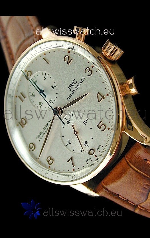 IWC Portuguese Chronograph Swiss Replica Watch in Rose Gold Casing