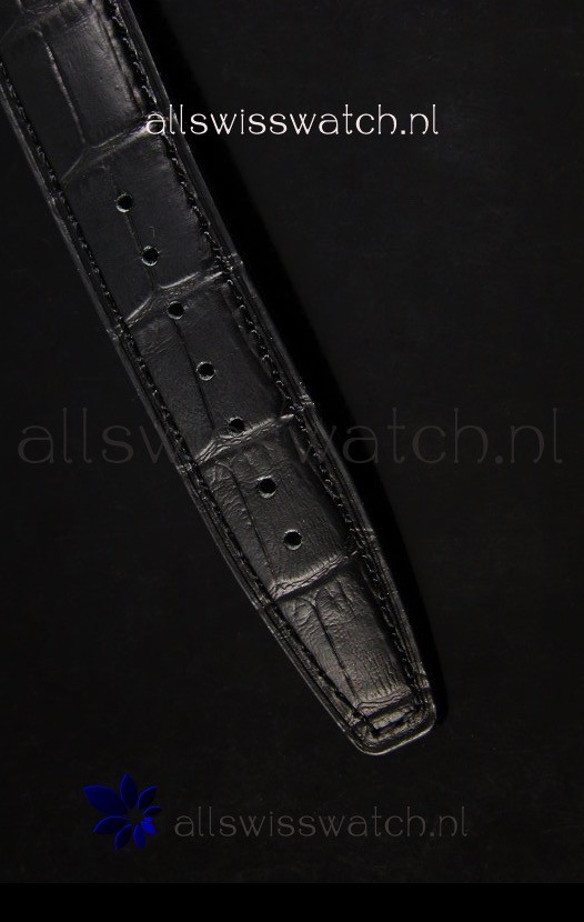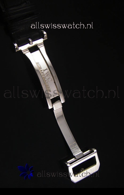 Genuine Black Leather Strap with IWC markings and engravings with Polished Stainless Steel Deployment Clasp
