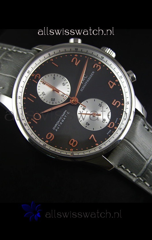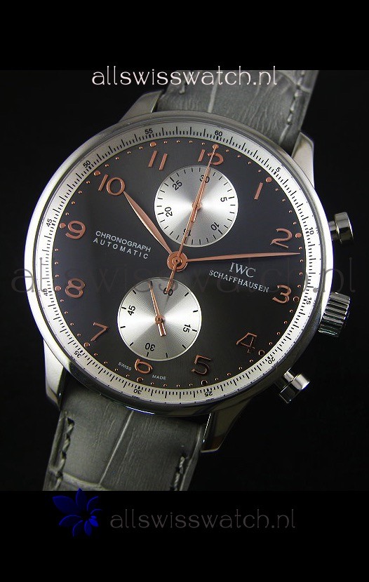 IWC Portuguese Chronograph Swiss Replica Watch in Steel Case - 1:1 Mirror Replica Edition