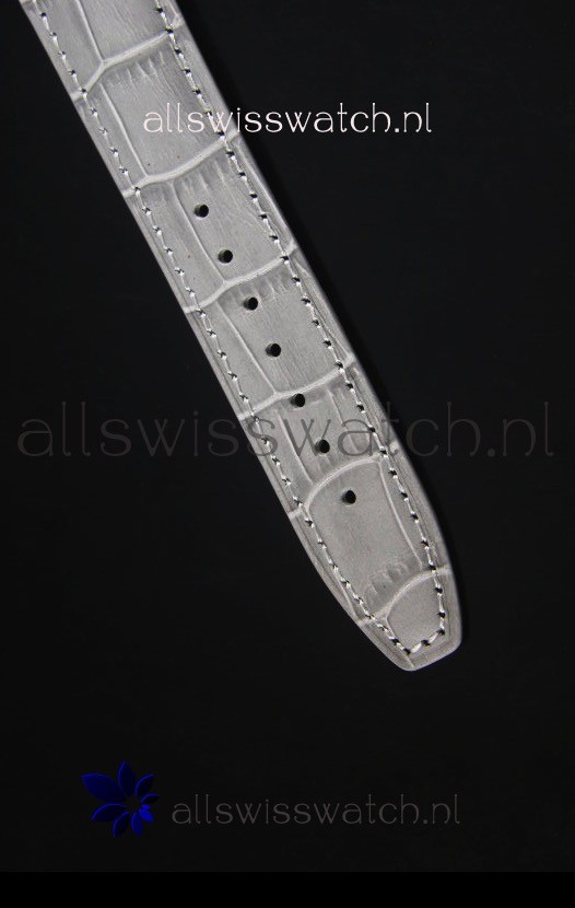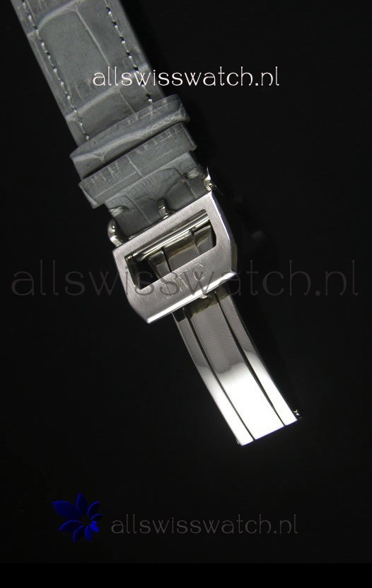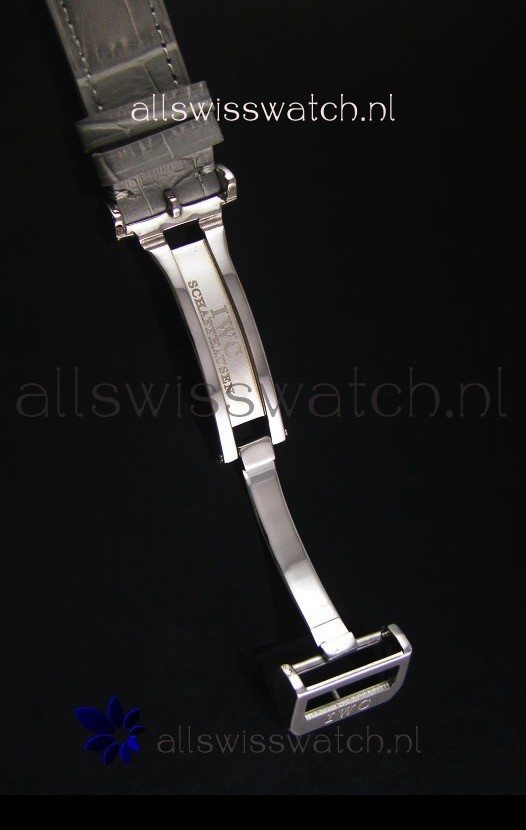 Genuine Grey Leather Strap with IWC markings and engravings with Polished Stainless Steel Deployment Clasp