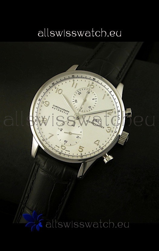 IWC Portuguese Chronograph Swiss Replica Watch in Steel Case - 1:1 Mirror Replica Edition