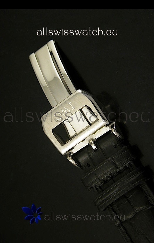 Genuine Black Leather Strap with IWC markings and engravings and Pink Gold Plated Clasp also Guaranteed Not to Fade