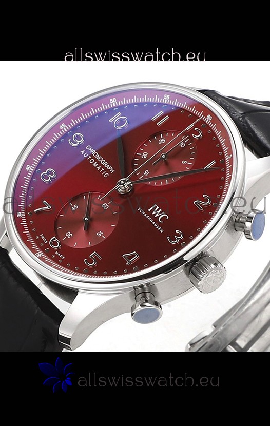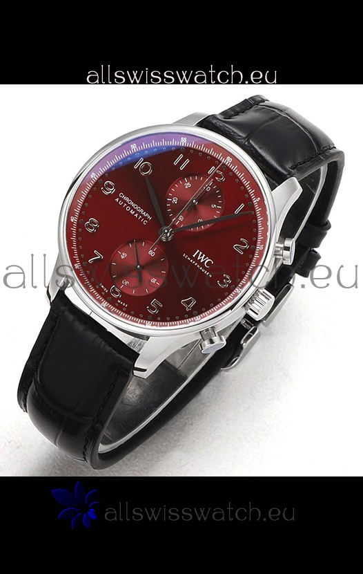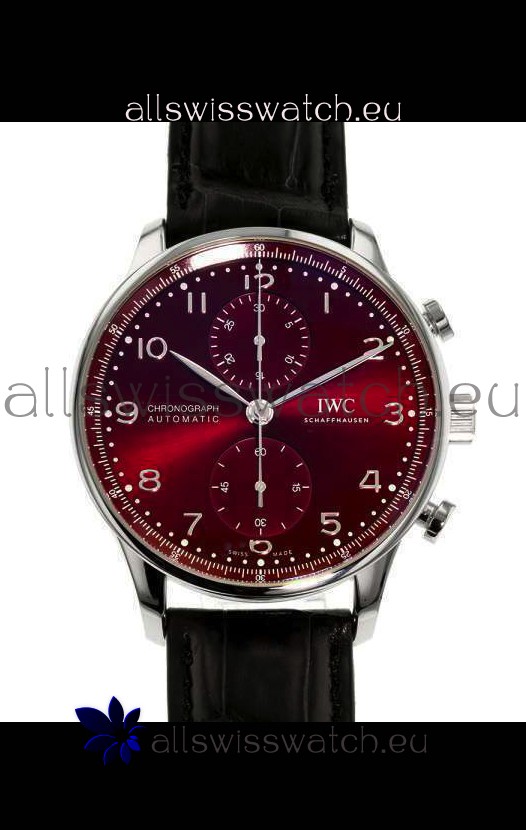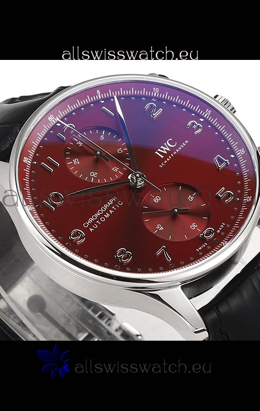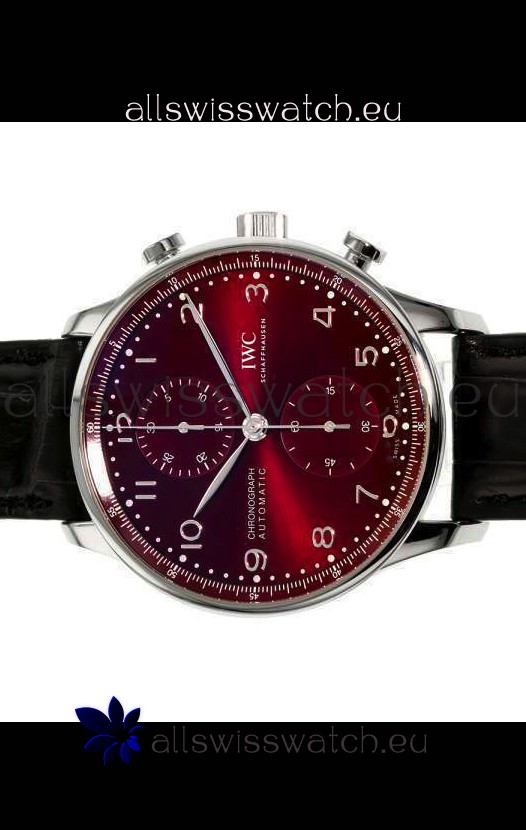 IWC Portuguese Chronograph Swiss Replica Watch in Steel Case Maroon Dial - 1:1 Mirror Replica Edition