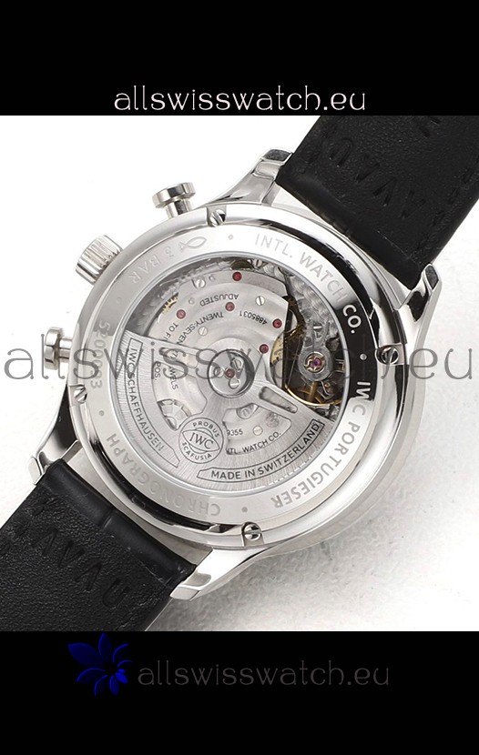 Genuine Swiss Updated 7753 Valjoux Automatic Movement with Functional Stopwatch feature like the Authentic Watches. Movement has been heavily modified to resemble the IWC CAL.69355 Movement.