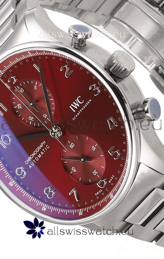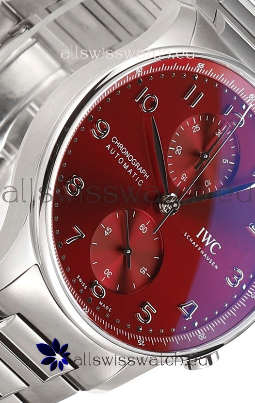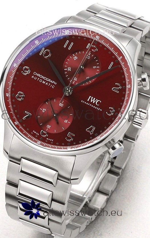 IWC Portuguese Chronograph Swiss Replica Watch in Steel Case Maroon Dial - 1:1 Mirror Replica Edition