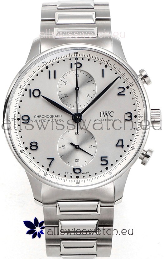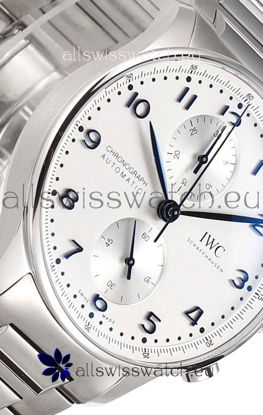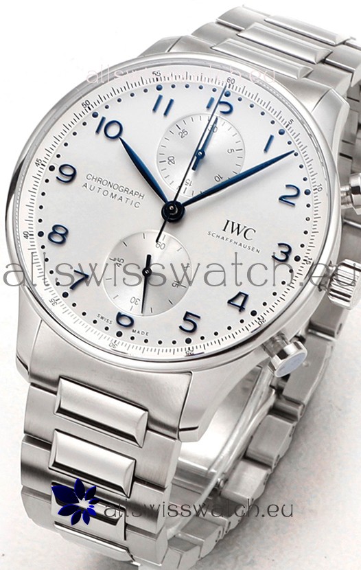IWC Portuguese Chronograph Swiss Replica Watch in Steel Case White Dial - 1:1 Mirror Replica Edition