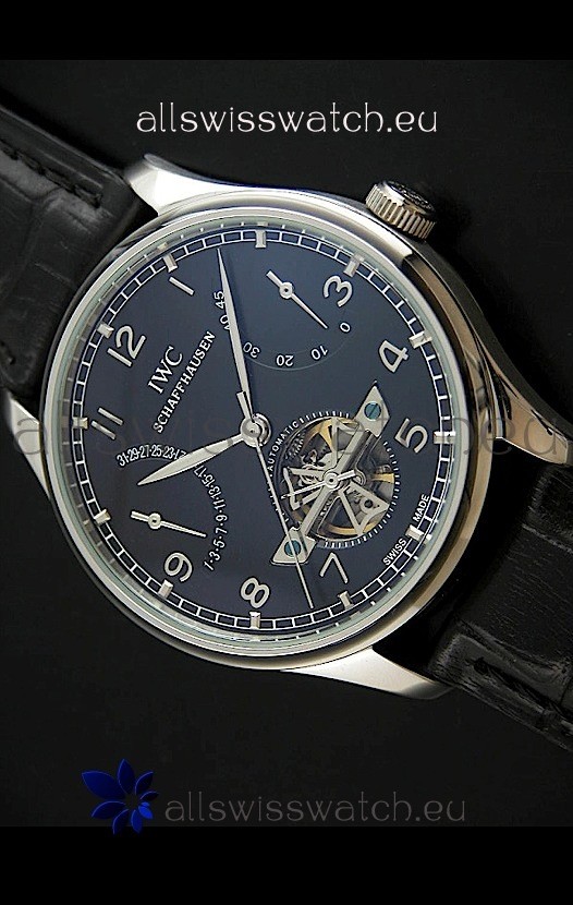 IWC Portuguese FA Jones Japanese Replica Watch in Black Dial with Tourbillon