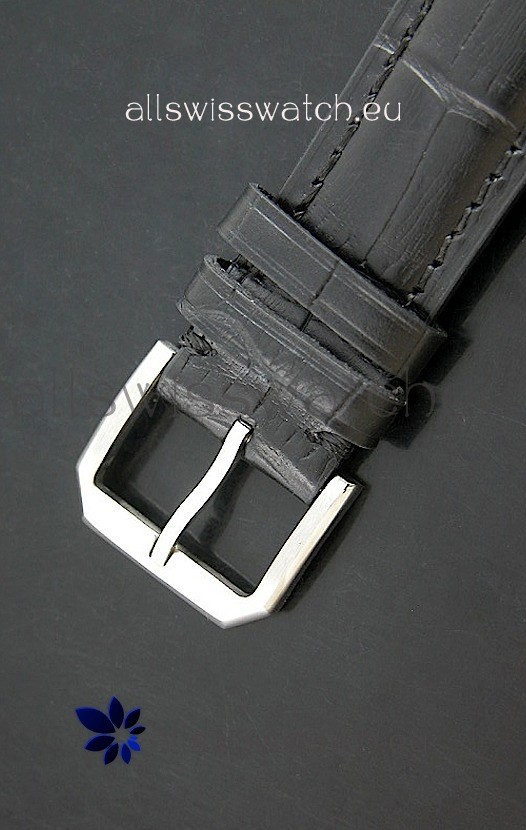 Strap: Genuine Black Leather Strap with Insignia Tang Buckle