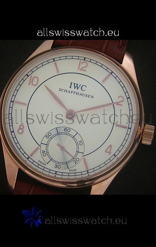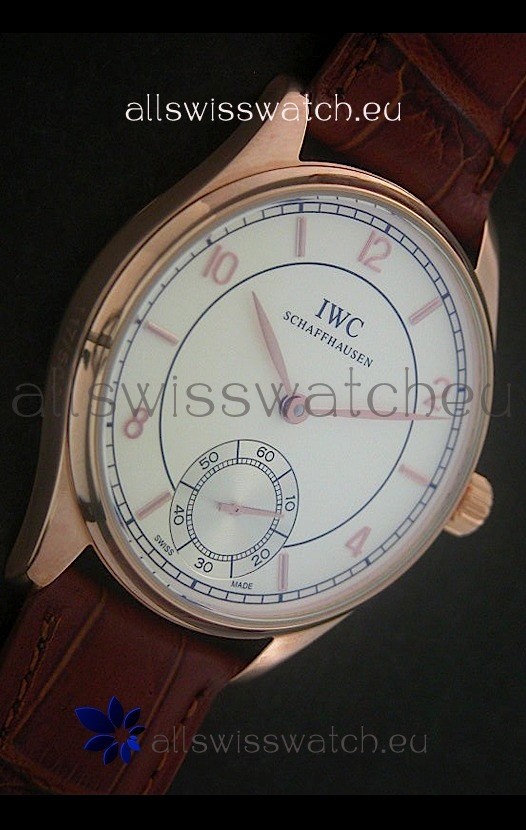 Watch name: IWC Portuguese FA Jones Japanese Replica Watch in Rose Gold Casing