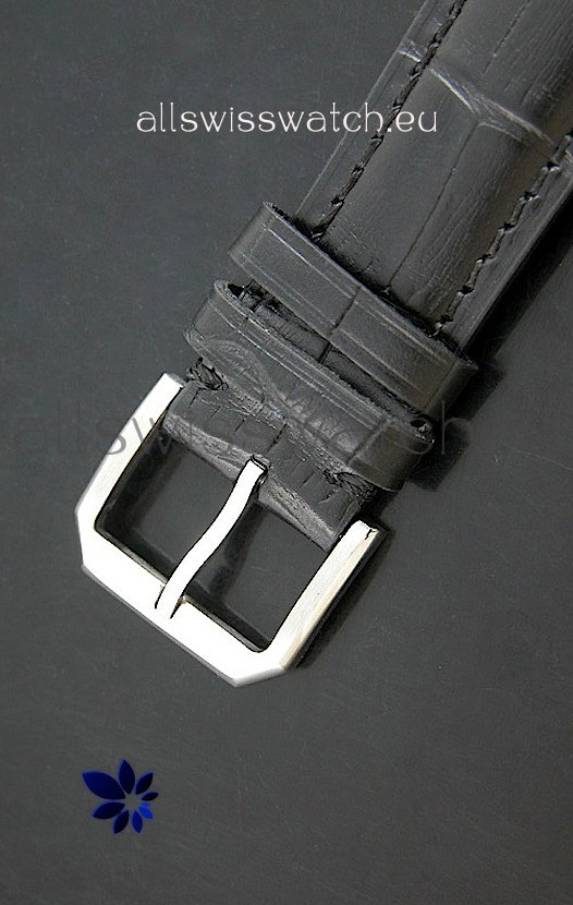 Strap: Genuine Black Leather Strap with Insignia Tang Buckle