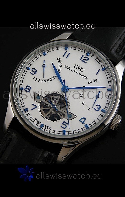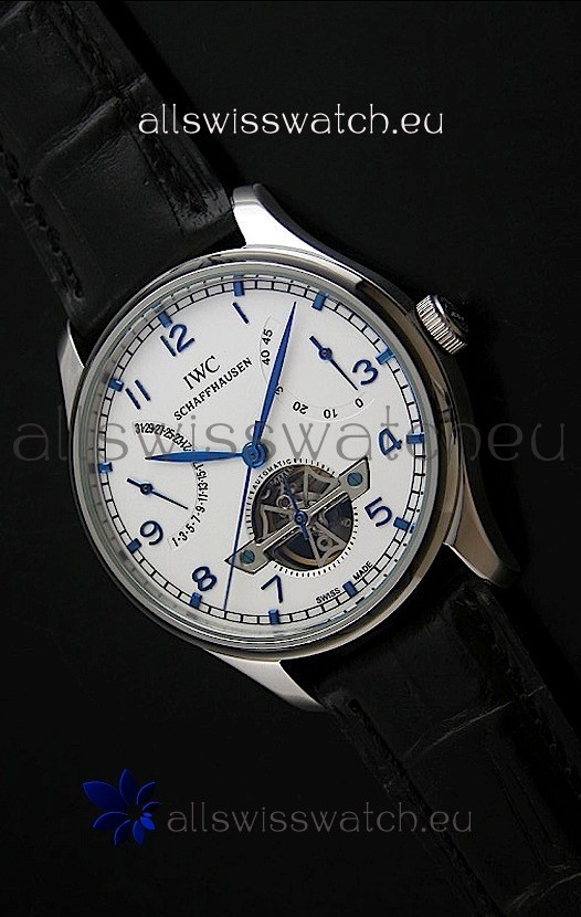 IWC Portuguese FA Jones Japanese Replica Watch in White Dial with Tourbillon
