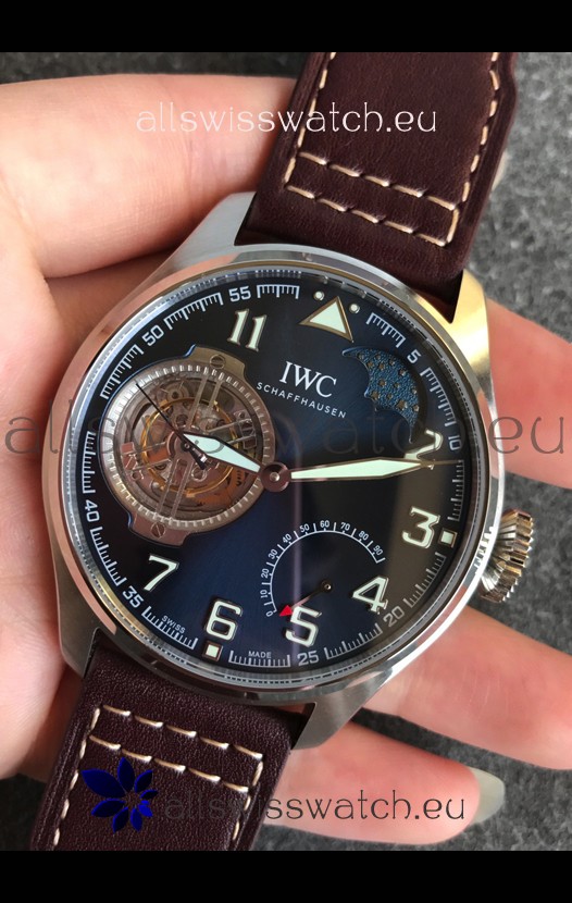 IWC Portuguese Genuine Swiss Tourbillon Movement Steel Watch in Blue Dial