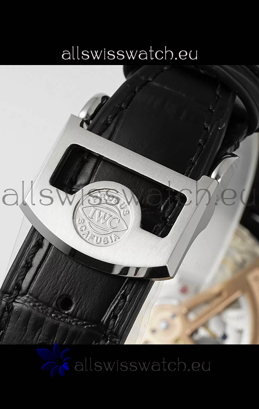 Genuine Black Leather Strap with IWC Markings and Engravings with Tang 18K Rose Gold Plated Steel Buckle