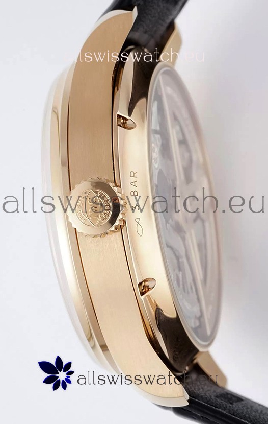 18K Rose Gold Plating on 904L Polished Solid Stainless Steel Case with IWC Markings and Engravings