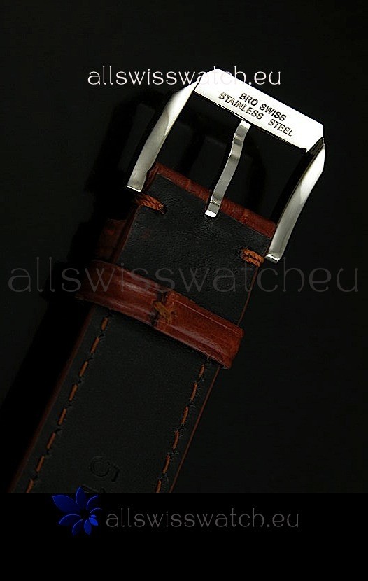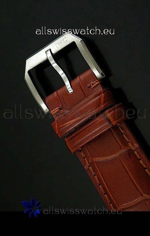 Genuine Brown Leather Strap with IWC Markings and Engravings with Tang Stainless Steel Buckle