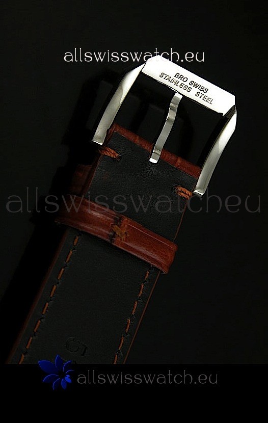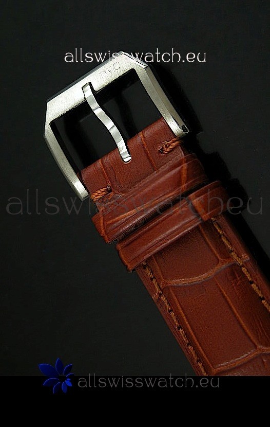 Genuine Brown Leather Strap with IWC Markings and Engravings with Tang Stainless Steel Buckle
