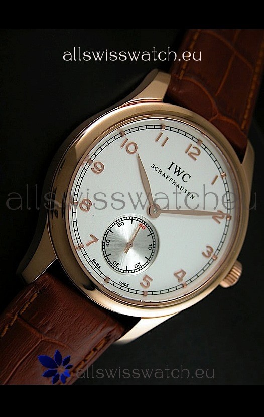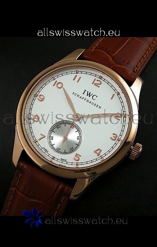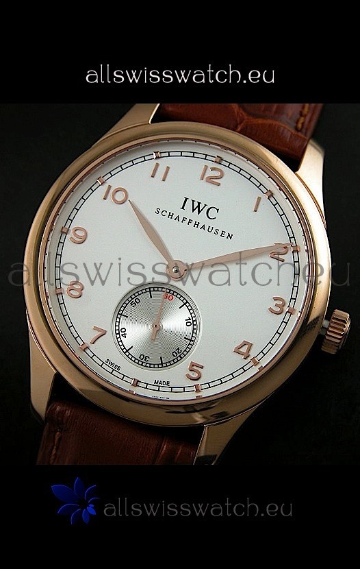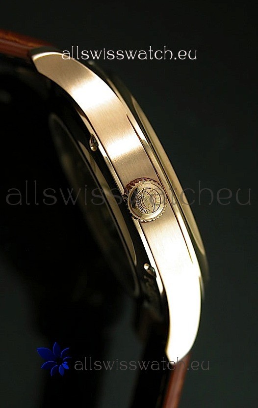 18K Pink Gold Plating on 440 Polished Solid Stainless Steel Case with IWC Markings and Engravings