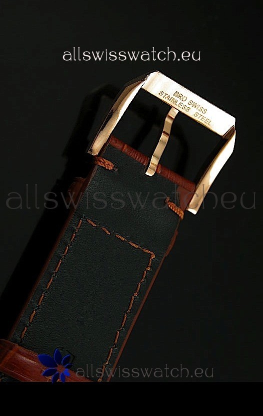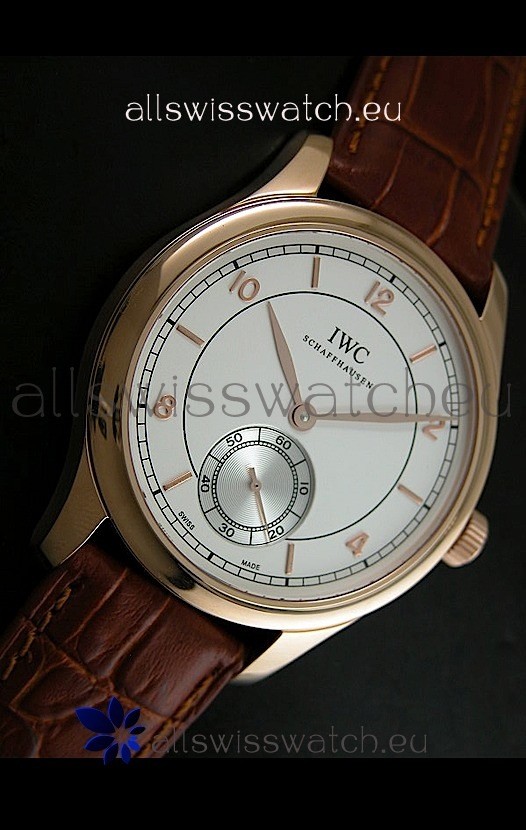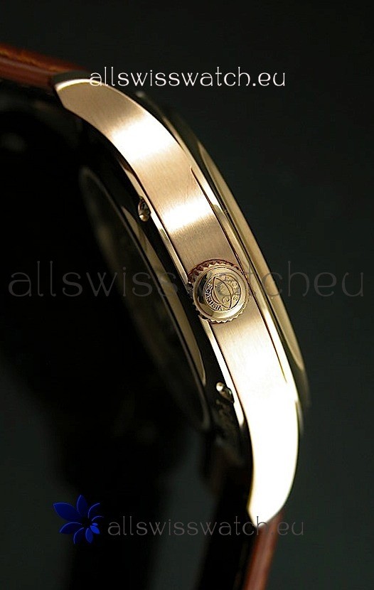18K Pink Gold Plating on 440 Polished Solid Stainless Steel Case with IWC Markings and Engravings
