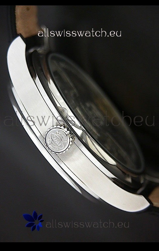 Strap: Genuine Black Leather Strap with Deployant Buckle