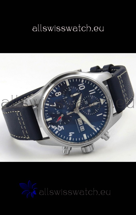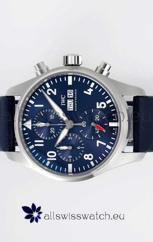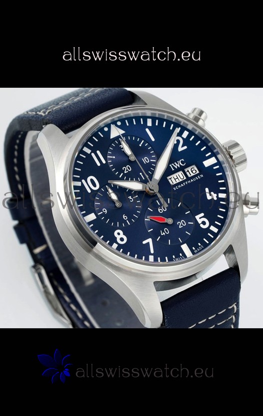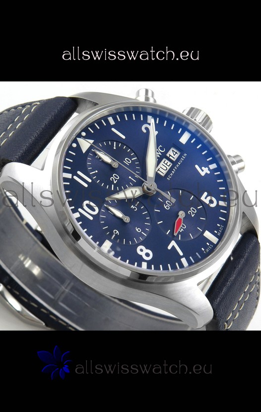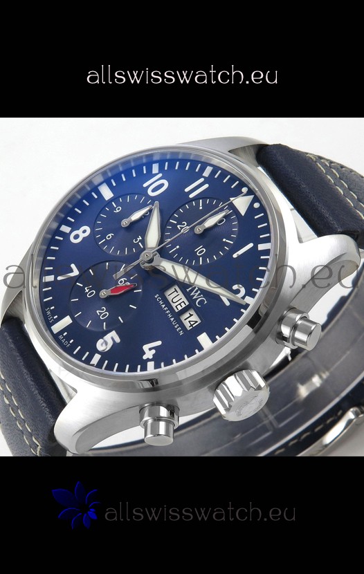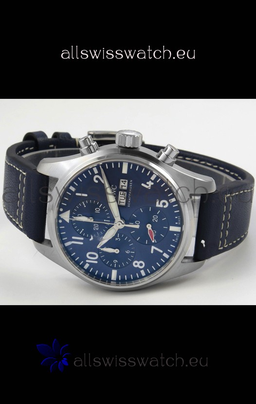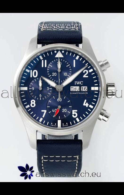 IWC Super Clone Pilot Chronograph Edition Blue Dial Leather Swiss Replica Watch