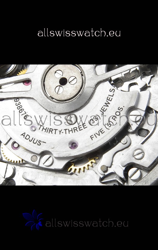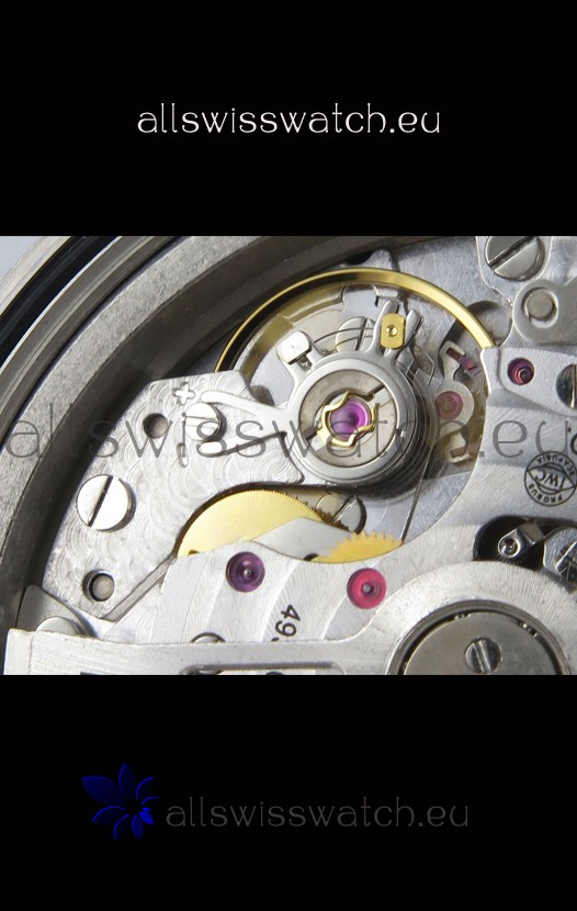 Base 7750 Movement Modified to Resemble the IWC 69385 Movement. Platinum Decodated Plate and Rotors. The Most Identical Machinery setup when compared with the Originals.