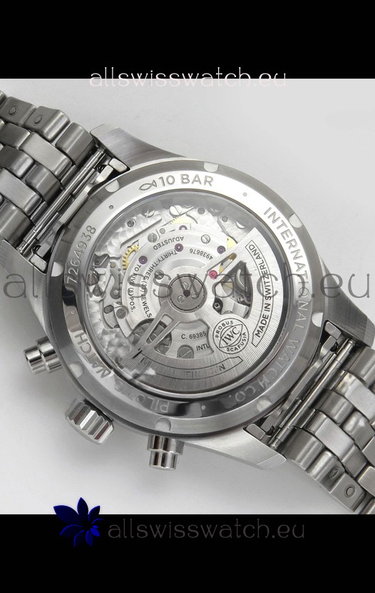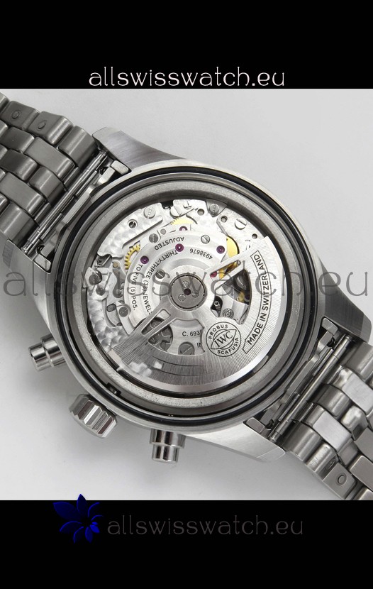 Base 7750 Movement Modified to Resemble the IWC 69385 Movement. Platinum Decodated Plate and Rotors. The Most Identical Machinery setup when compared with the Originals.